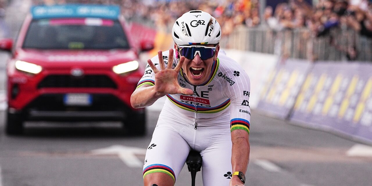 We’ve long run out of words to describe Tadej Pogačar. Thus, this time, as we celebrate his fifth triumph at Il Lombardia (matching Fausto Coppi’s all-time record), we’ll let the numbers and records speak for themselves. As for today’s race, all you need to know is that, right on cue, he attacked on the Passo di Ganda, dropped everyone, and soloed away to Bergamo. Once again, Remco Evenepoel (Soudal-QuickStep) had little to no answer and finished second, while Michael Storer (Tudor) impressed with a solid third place.