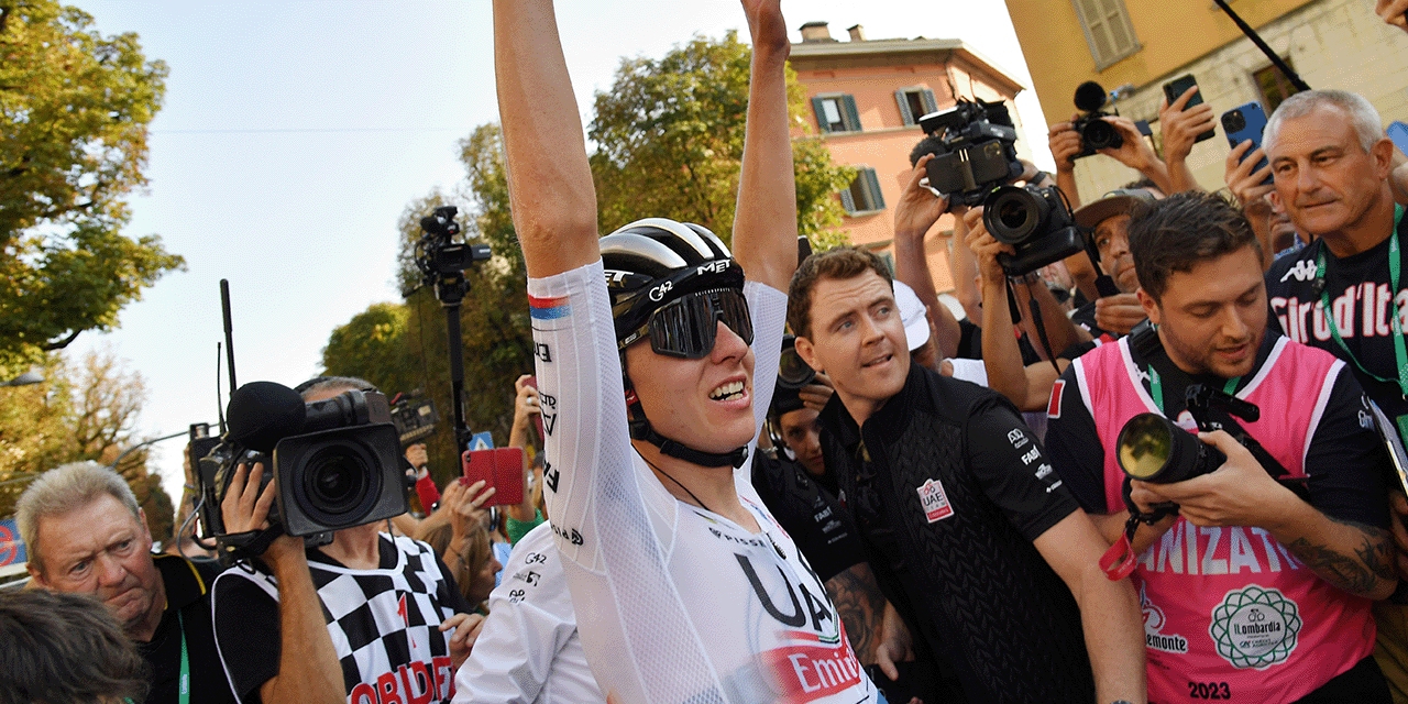 A Il Lombardia è stato capace di vincere anche quando magari non era il consueto schiacciasassi. Nel 2021, a Bergamo (dove si arriverà anche quest’anno), batté in una volata a due Fausto Masnada, mentre l’anno successivo, a Como, fece lo stesso con Enric Mas. Nel 2023 fu il più scaltro di tutti, perché attaccò in vista dello scollinamento sul Passo di Ganda, quando ormai nessuno se lo aspettava, arrivando poi in solitaria. L’anno scorso, invece, aveva disintegrato tutti, spianando la Colma di Sormano e rifilando, alla fine, 3’16” a Remco Evenepoel, secondo arrivato.